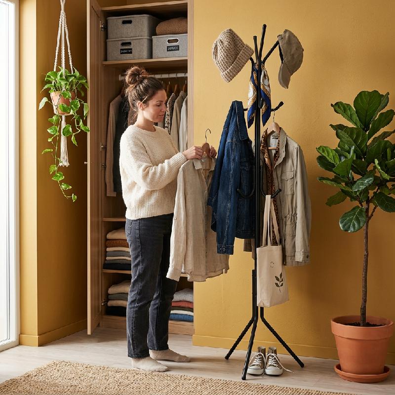 - Perchero Carpio con diseño vertical moderno ideal para organizar ropa y accesorios en el hogar.