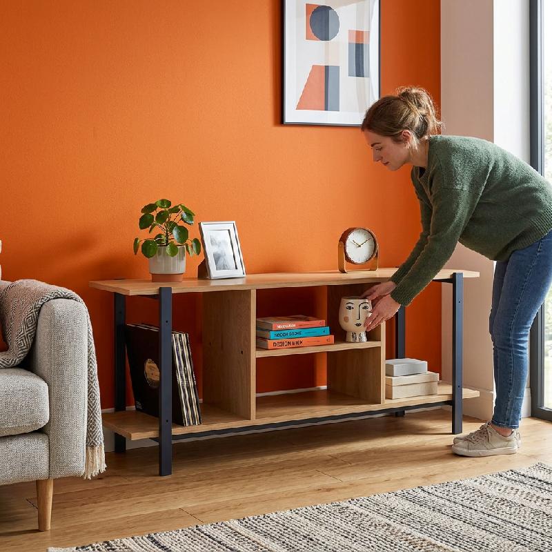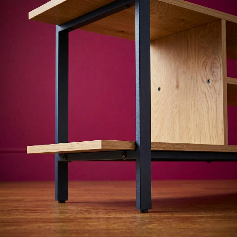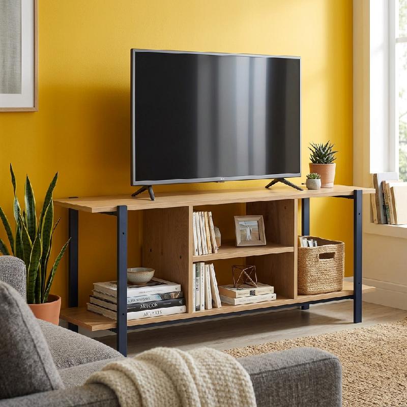 - Mesa TV Aurelio con diseño moderno e industrial ideal para organizar tu espacio de entretenimiento.