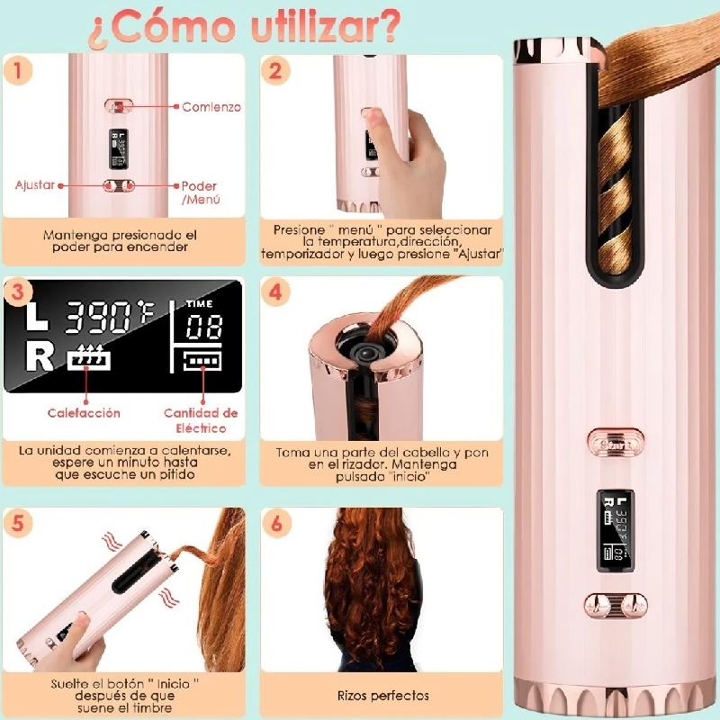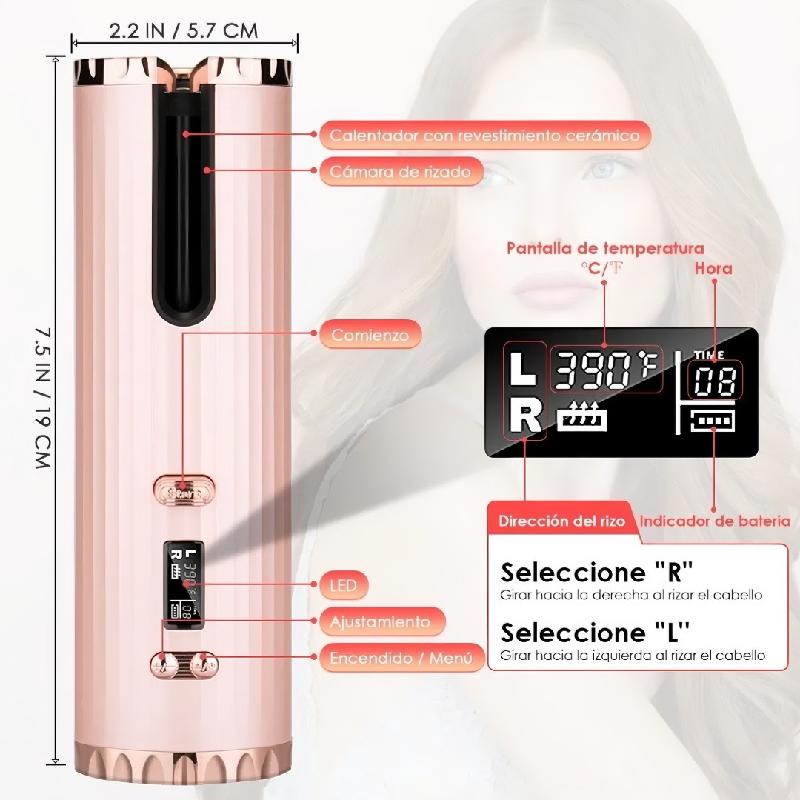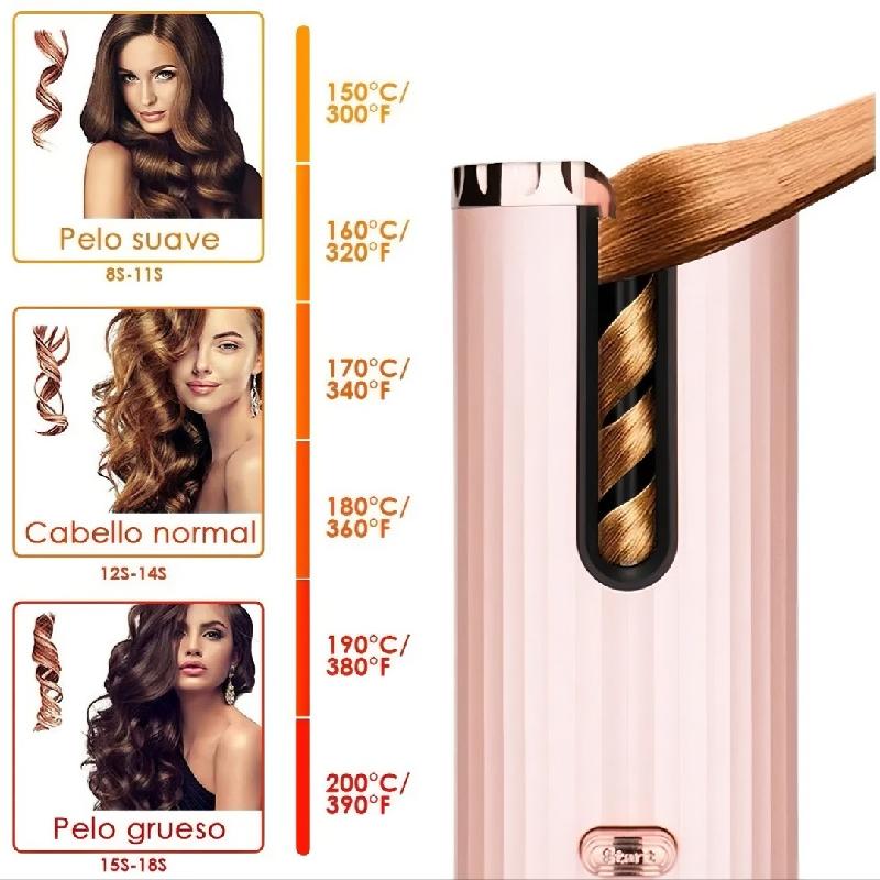 Rizadora De Cabello Inalámbrico Automático Lcd 34w 150-200c