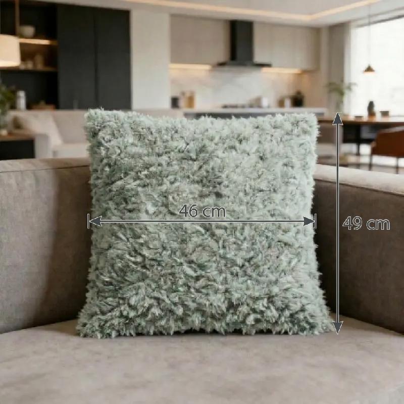 FUNDA COJIN FORRO ALMOHADA CUBIERTA DECORATIVA PELUDA ESPONJOSA POLIESTER CUADRADA COLOR VERDE LH00350V