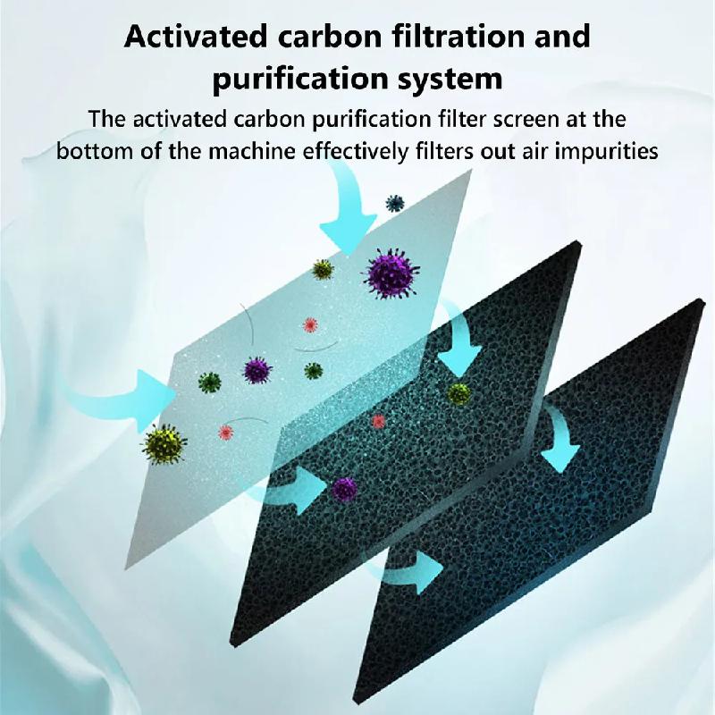 Filtración eficiente: El purificador cuenta con un filtro de alta eficiencia H13 con un desodorante, capaz de filtrar el 99,95% de las partículas tan pequeñas como 0,1 micrómetros, incluido el polvo, las virutas, la caspa de las mascotas y los olores.