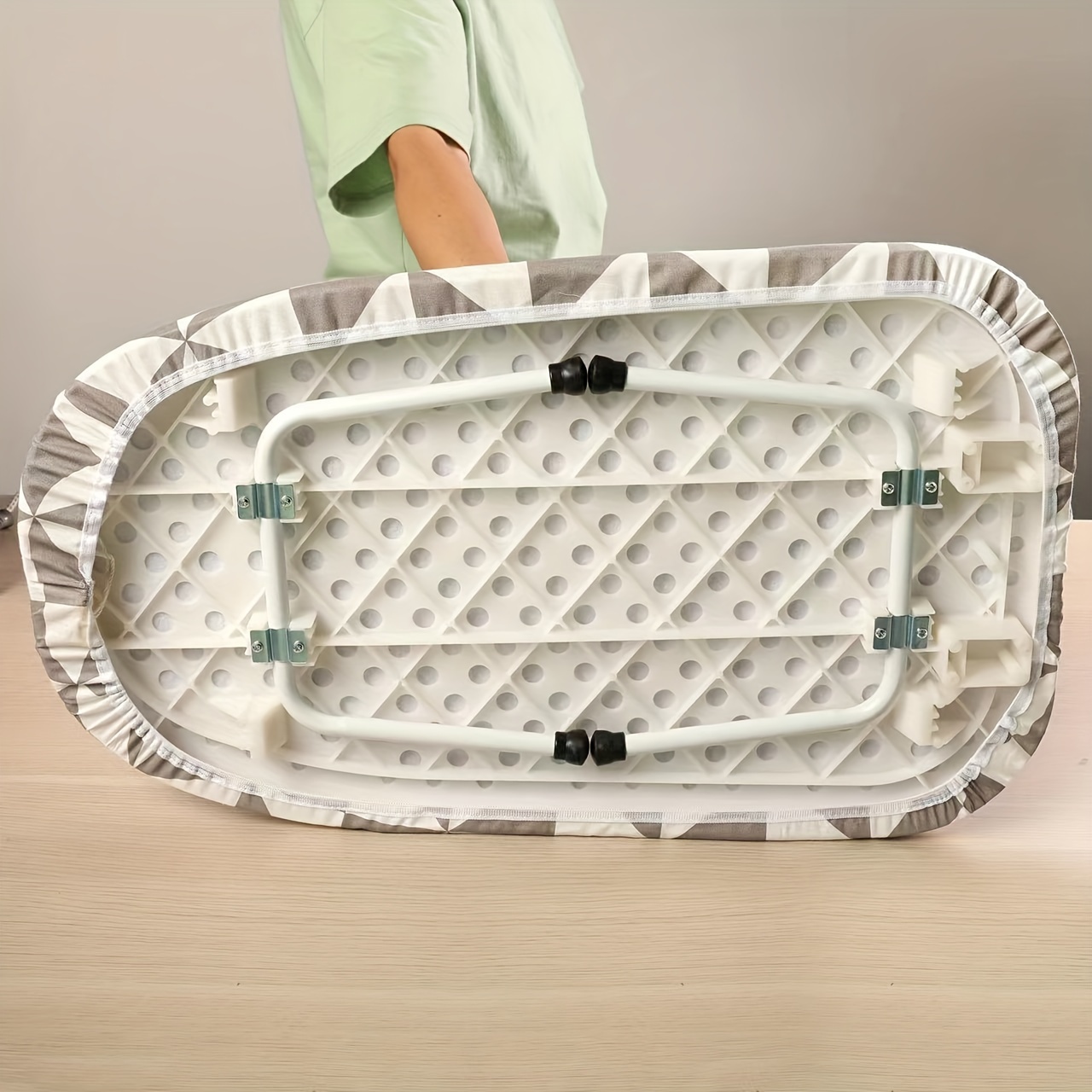 Fácil de usar: la funda de tela extraíble y lavable para la tabla de planchar te permite lavarla regularmente para evitar que tu ropa planchada se ensucie. La mini tabla de planchar plegable que ahorra espacio es fácil de usar en casa o de viaje.