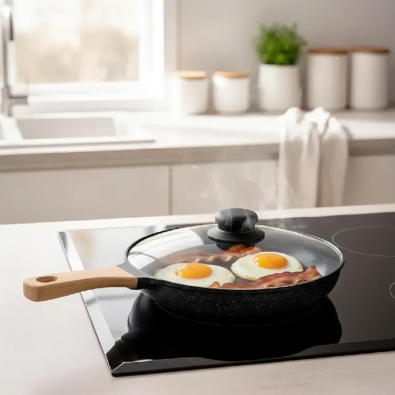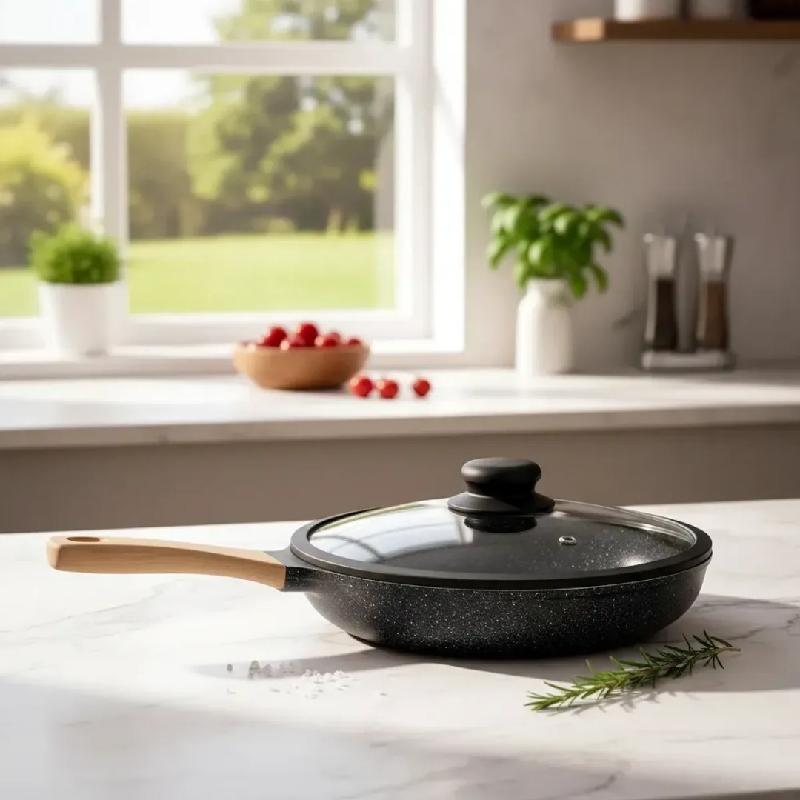 El sartén antiadherente JS‑28CM de 28 cm es perfecto para cocinar de manera saludable y práctica. Su recubrimiento tipo piedra evita que los alimentos se peguen y facilita la limpieza. Incluye tapa de vidrio con pomo ergonómico que permite controlar la cocción sin perder calor. El mango de madera brinda un agarre cómodo y seguro, mientras que su diseño moderno lo hace ideal para cocinas domésticas y profesionales.