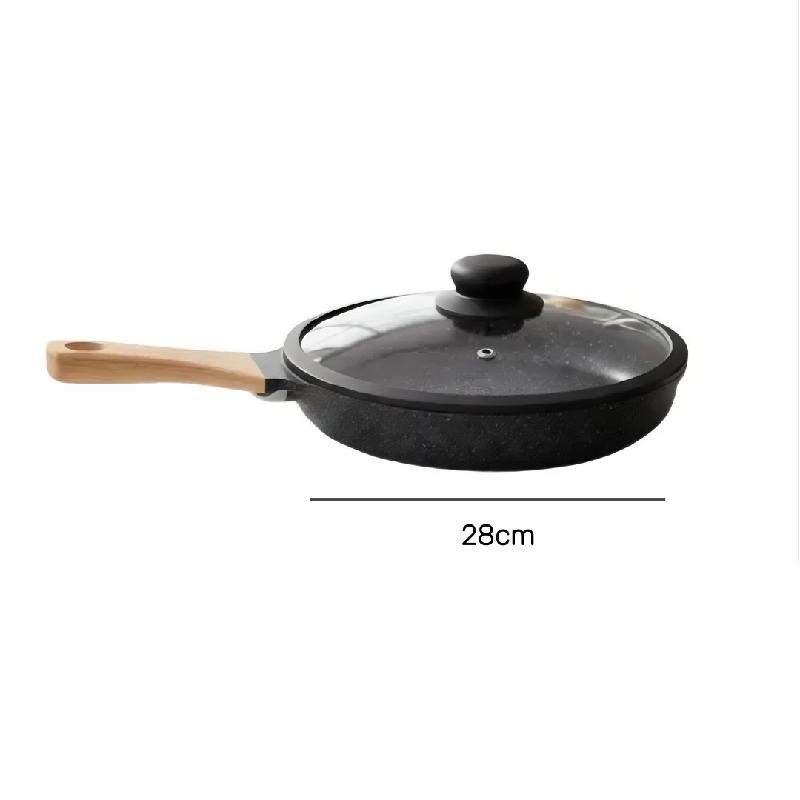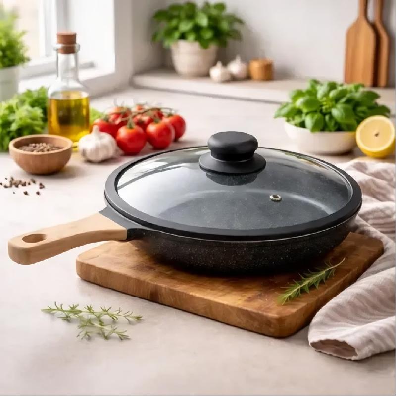 SARTEN ANTIADHERENTE 28CM COCCION CON TAPA VIDRIO TRANSPARENTE MANGO MADERA COCINA ERGONOMICO JS28CM