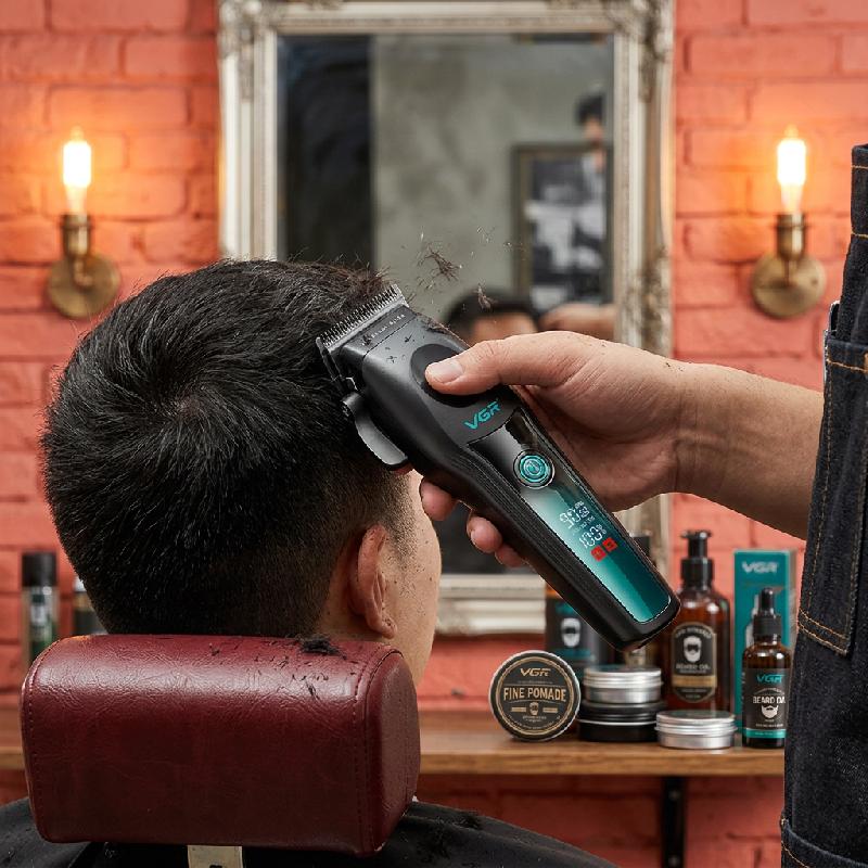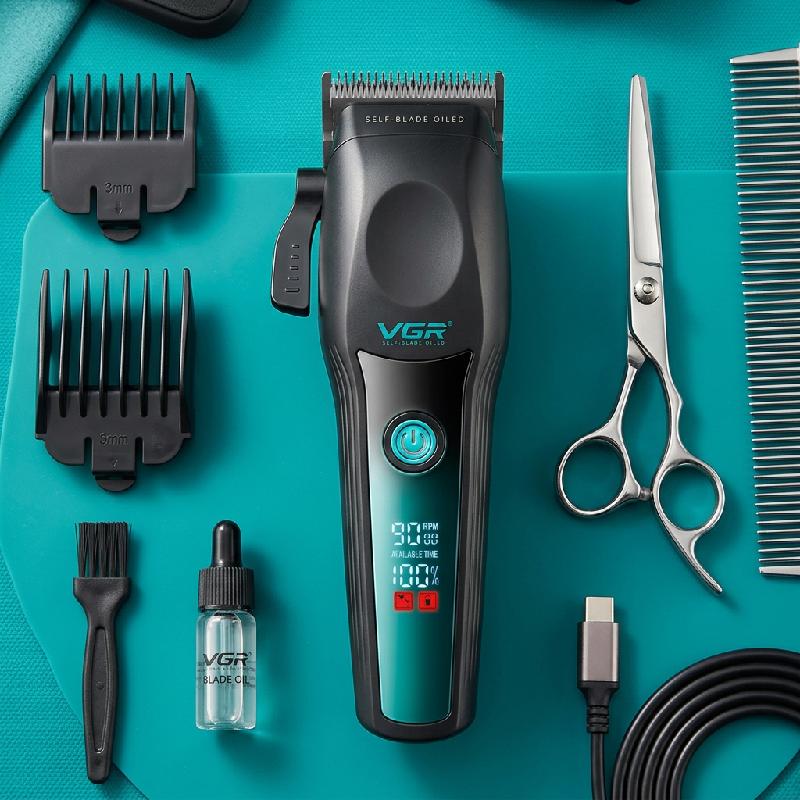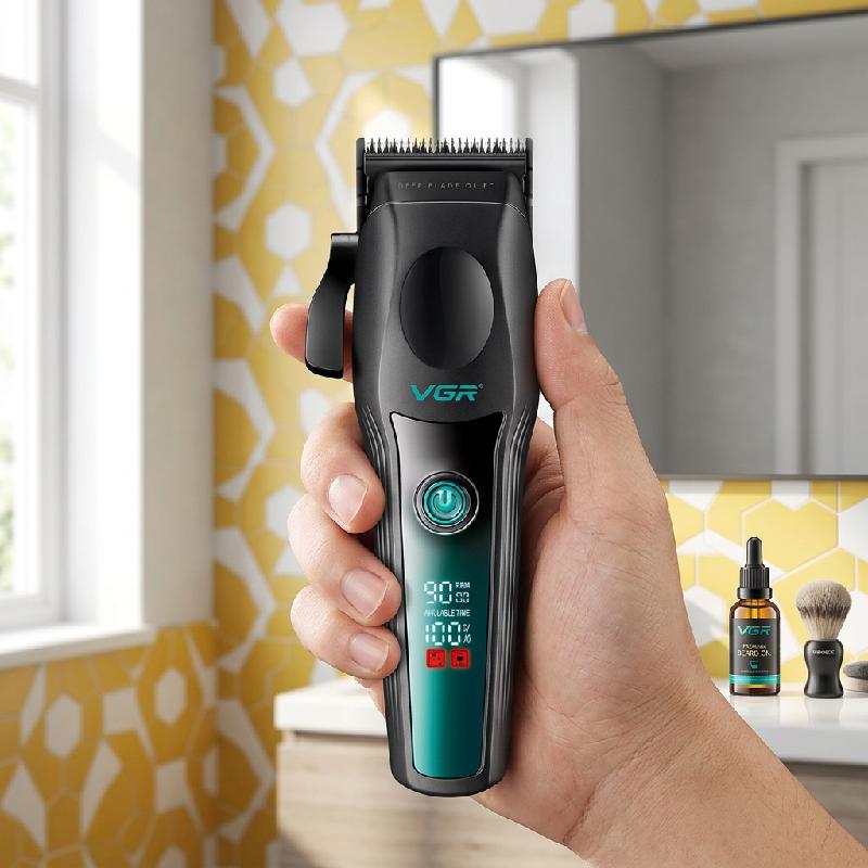 - Máquina cortapelo profesional VGR V-195 diseñada para barbería y uso personal con alto rendimiento.