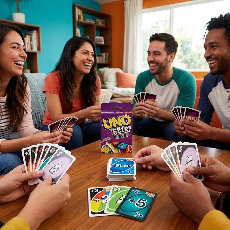 - Aumenta la emoción con cartas especiales como Flip, +5, Salta a todos y Toma un color.