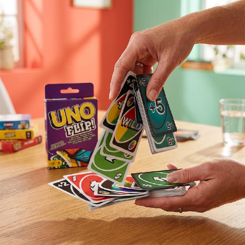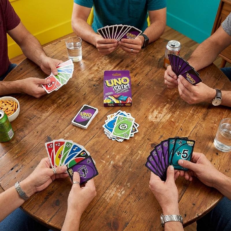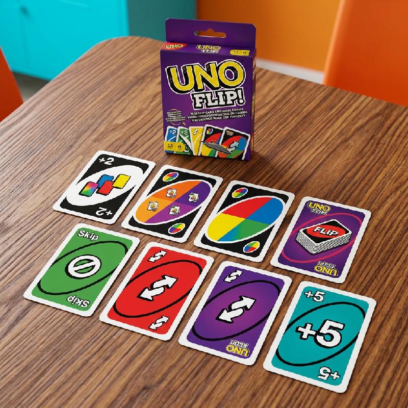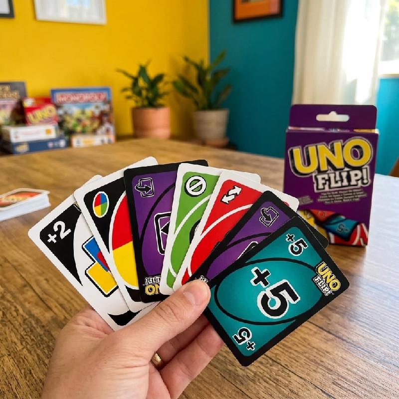 - Juego de cartas UNO Flip con doble cara que ofrece una experiencia dinámica y diferente.