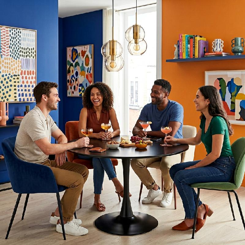 - Favorece la interacción gracias a su forma redonda, creando un ambiente más acogedor.