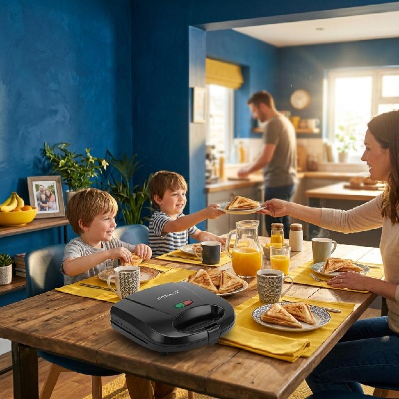El aliado ideal para desayunos rápidos y deliciosos: placas antiadherentes de fácil limpieza y un tostado uniforme para que disfrutes más y limpies menos.