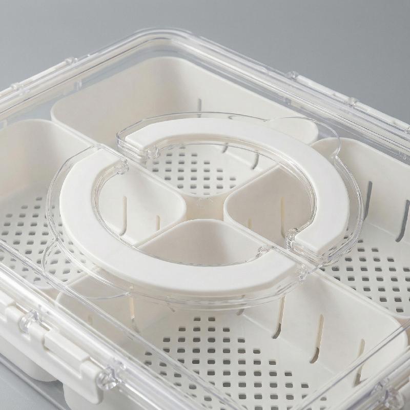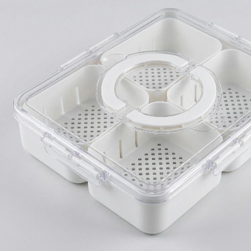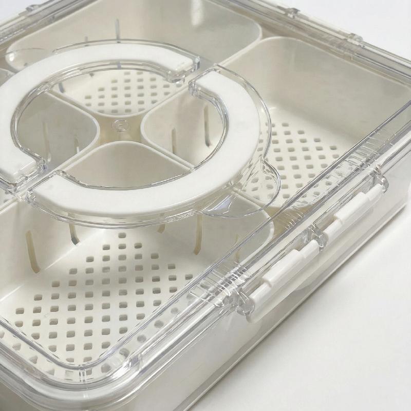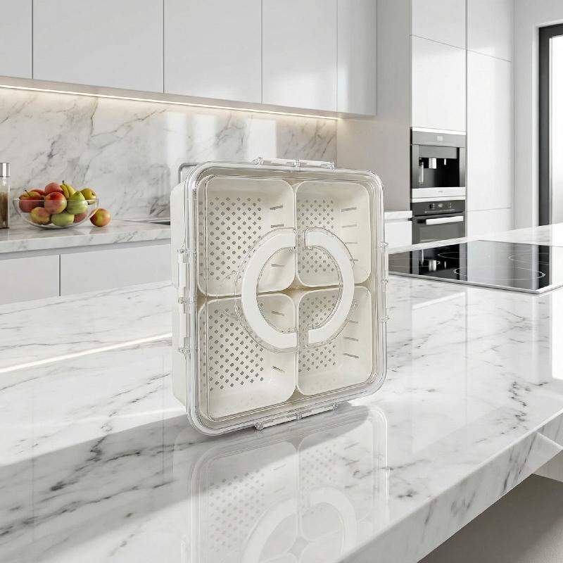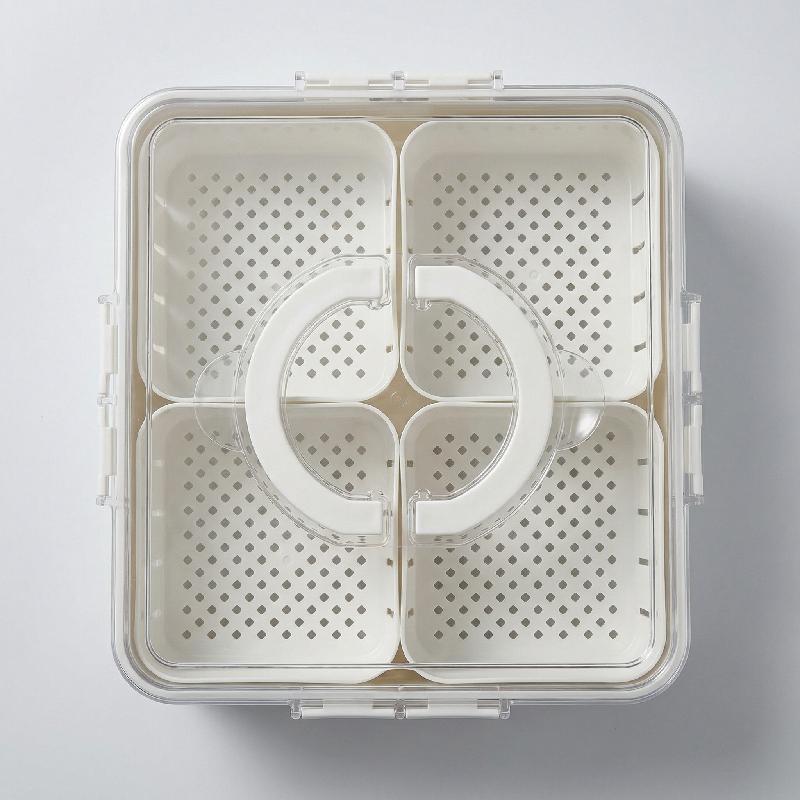 RECIPIENTE ACRILICO 4 COMPARTIMENTOS ORGANIZADOR ALIMENTOS COLADOR DRENAJE FRUTAS VERDURAS RAC-128