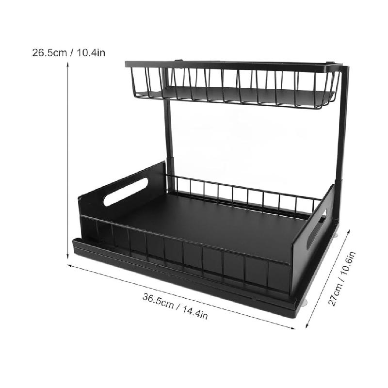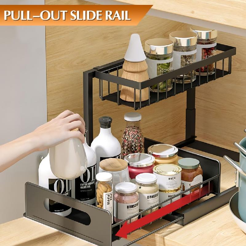 Cajón de almacenamiento deslizante: el organizador debajo del fregadero está diseñado como un cajón deslizante con asas, se puede sacar suavemente, lo que te permite acceder fácilmente a los artículos almacenados en la parte inferior.