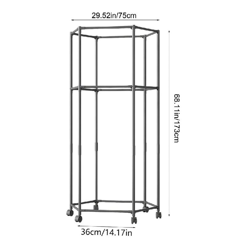 PERCHERO TENDEDERO COLGADOR DE ROPA HEXAGONAL DOBLE CAPA MULTIFUNCIONAL MOVIBLE CON RUEDAS PRLA772