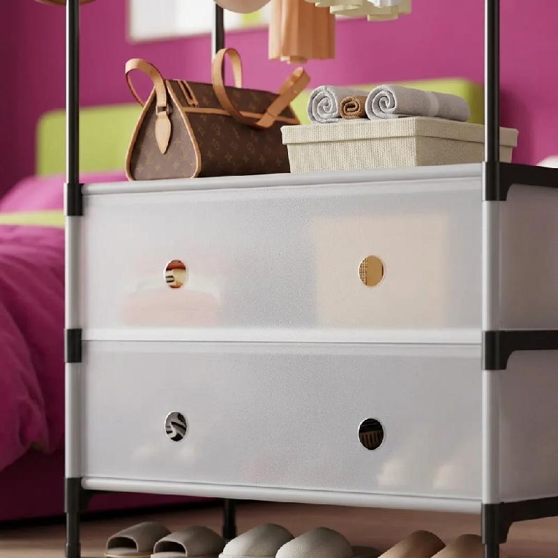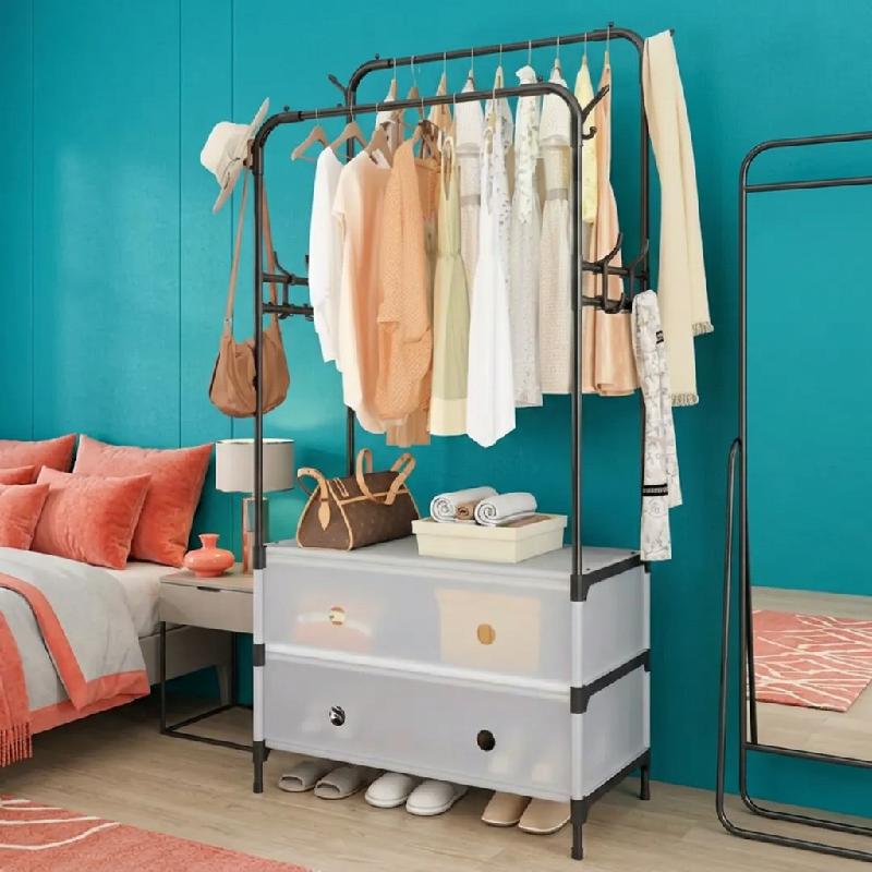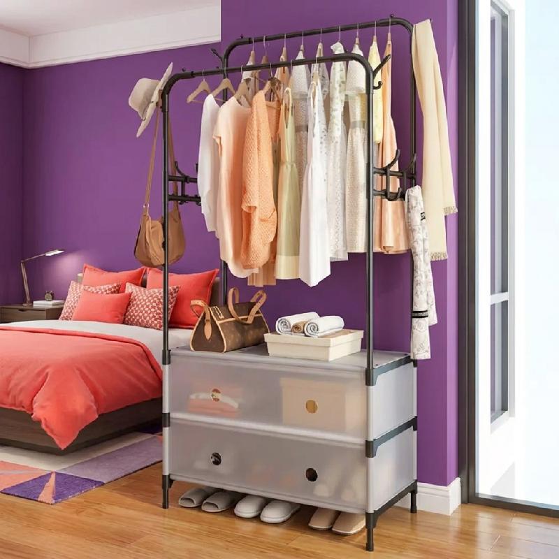 ZAPATERO PERCHERO ORGANIZADOR DOBLE METALICO CON CAJONES GANCHOS MULTIFUNCIONAL 63CM PRLA801