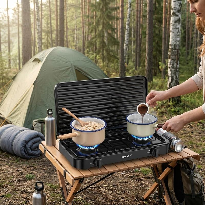 - Incluye 1 cocineta, 2 hornillas y 1 rejilla resistente.