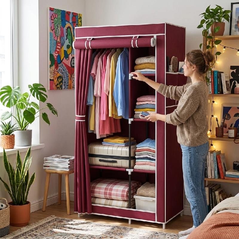 - Clóset de tela modelo 7701 con diseño compacto ideal para organizar ropa y accesorios.