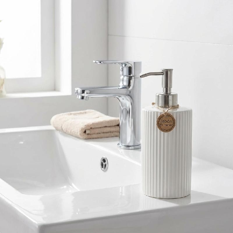 DISPENSADOR JABON LIQUIDO CERAMICA DOSIFICADOR MANUAL BOTELLA RECARGABLE BOMBA ACERO INOXIDABLE 350ML BAÑO COCINA BLANCO T545827B