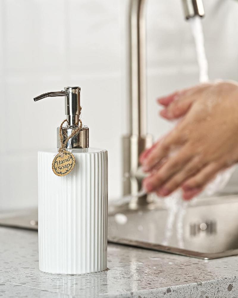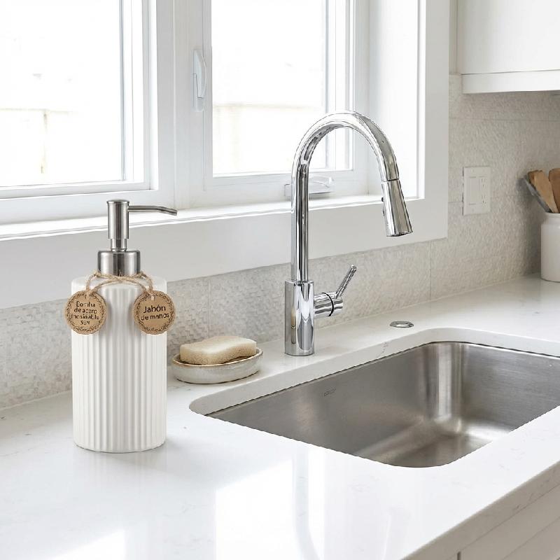 - Elegante y duradero: hecho de material de cerámica duradero de alta calidad, este dispensador de jabón es elegante y funcional, fácil de limpiar y mantener, añadiendo un toque de sofisticación a cualquier decoración de cocina o baño