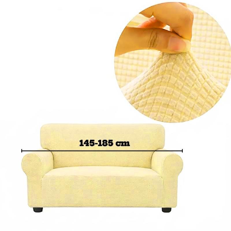 PROTECTOR DE SOFA MUEBLE 2 PUESTOS ELASTICA FLEXIBLE CON FUNDA COJIN SUAVE TELA LAVABLE TIRAS AJUSTABLES COLOR ARENA LH621