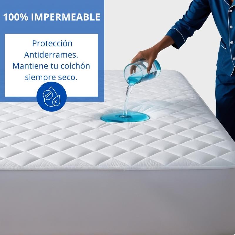 Cuida tu colchón y alarga su vida útil con este protector antifluido acolchado de alta calidad. Diseñado para ofrecer protección total sin sacrificar la comodidad.