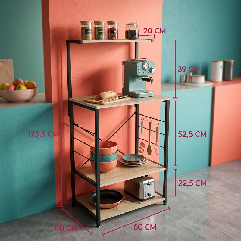 ESTANTE ORGANIZADOR 4 NIVELES ACERO AGLOMERADO GANCHOS COCINA SALA OFICINA DORMITORIO PETRA 60X40X123CM MKP1 X057MK