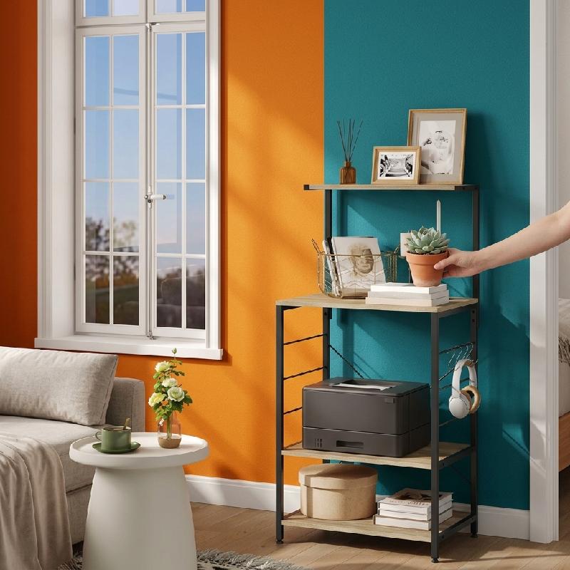 — 4 niveles de almacenamiento abierto para organizar desde electrodomésticos pequeños hasta libros y decoración