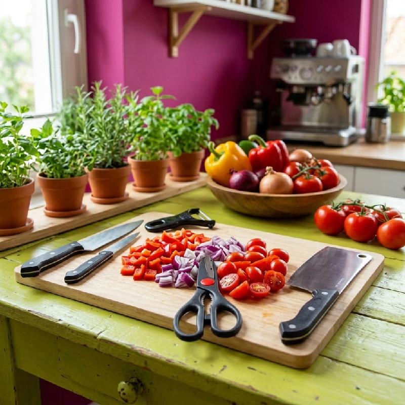 — Tabla de corte incluida que protege las superficies y complementa el set para una experiencia completa de cocina