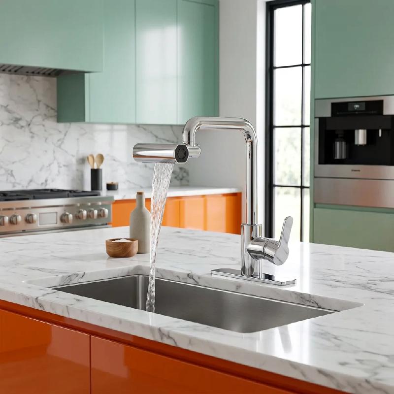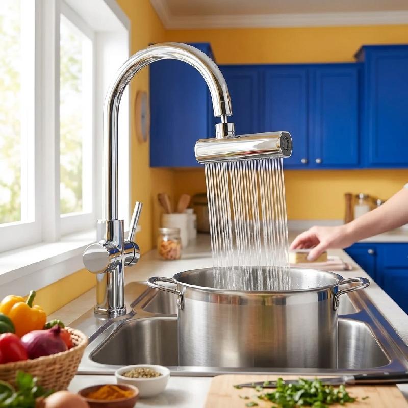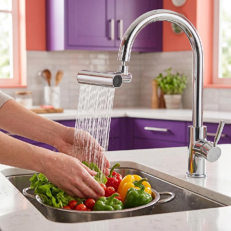 — Diseño versátil y funcional que se adapta a grifos de cocina, baño y lavaplatos sin necesidad de herramientas especiales