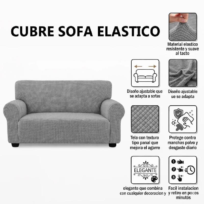 Material elastico resistente y suave al tacto - Diseno ajustable que se adapta a sofas segun su medida - Tela con textura tipo panal que mejora el agarre - Protege contra manchas polvo y desgaste diario - Color elegante que combina con cualquier decoracion - Facil instalacion y retiro en pocos minutos - Tela lavable para facil mantenimiento - Ajuste firme que cubre respaldo asiento y brazos del sofa.