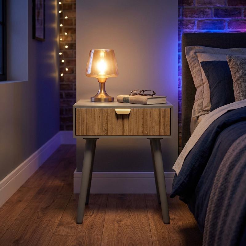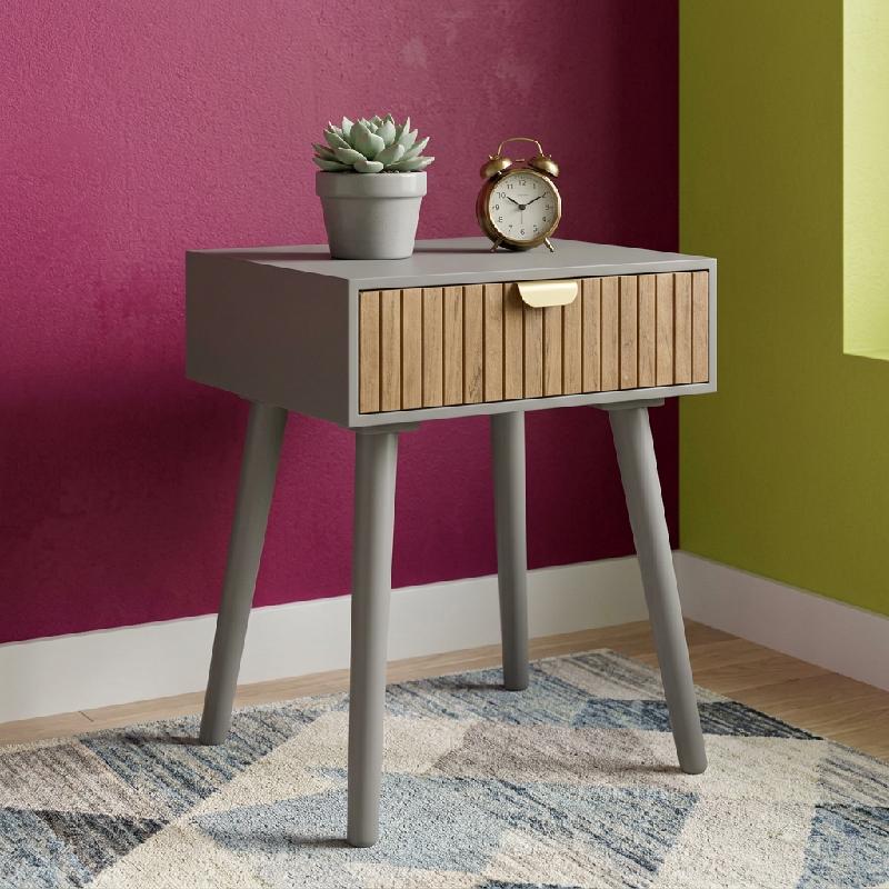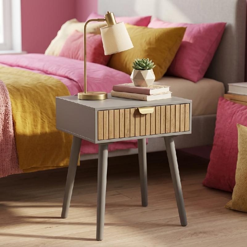— Diseño compacto y moderno con un cajón de almacenamiento para mantener el orden al lado de la cama