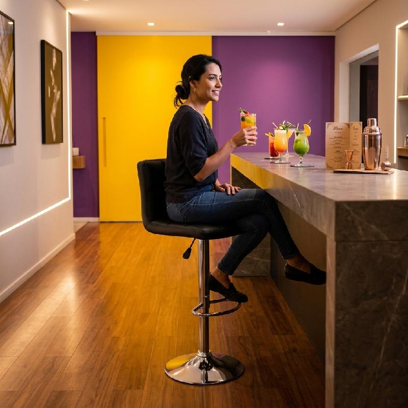 — Apoyo para pies integrado que mejora la ergonomía y el confort durante el uso prolongado en barras y mostradores