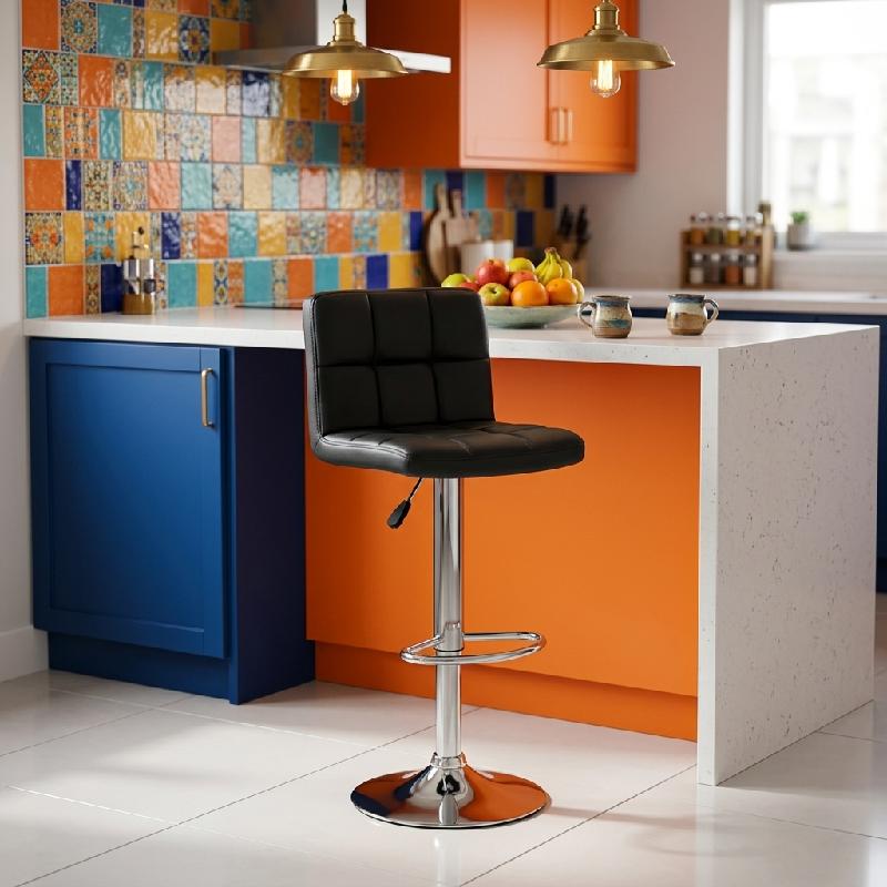 SILLA BAR BUTACO ALTA GIRATORIA 360 GRADOS ALTURA AJUSTABLE CUERO SINTÉTICO COCINA BARRA DENVER MKP1 X061MK