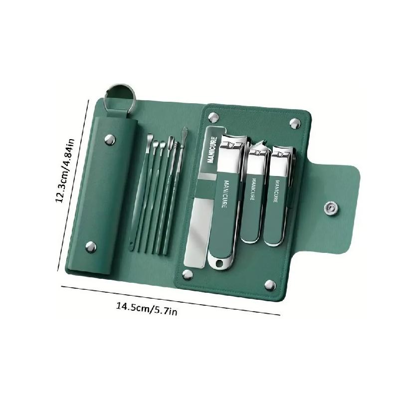 Kit de aseo 10 en 1 completo: Incluye cortaúñas para manos y pies, lima de uñas, herramientas para cutículas, limpiador de oídos, pinzas y más para un cuidado completo de manicura y pedicura.