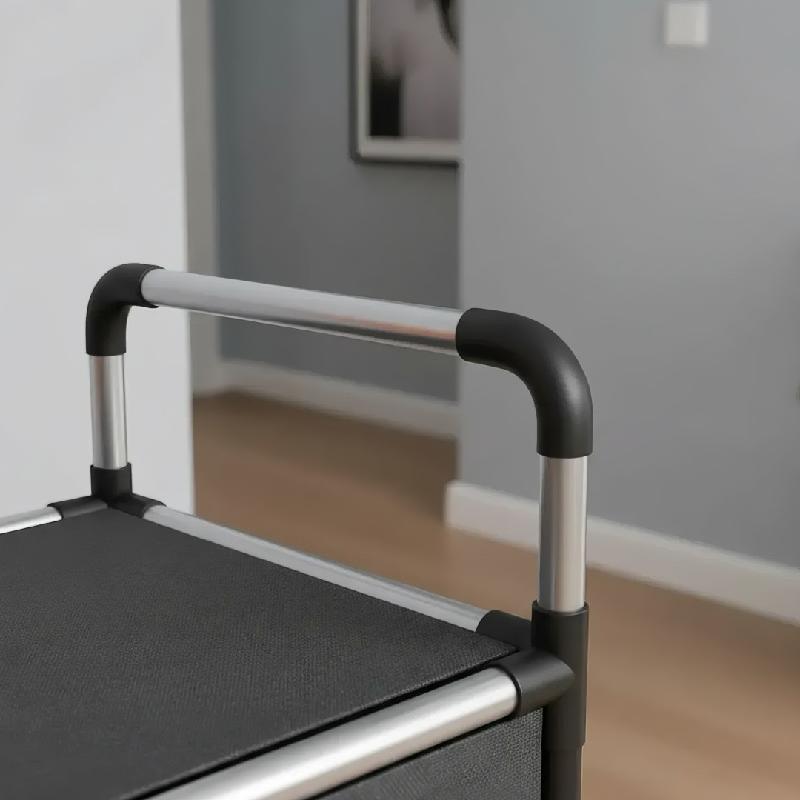Fabricado en plástico y aluminio, es ligero con un peso de solo 3,5 kg, lo que facilita su movilidad y ubicación en el hogar. Su estructura transpirable asegura que tus zapatos se mantengan frescos y en óptimas condiciones.