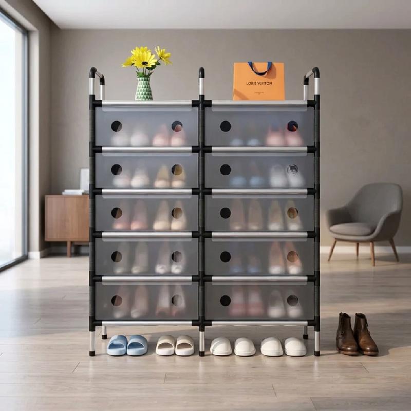 Zapatero Doble de 5 Niveles – Gran Capacidad y Ahorro de Espacio Mantén tus zapatos organizados y protegidos con este zapatero doble de 5 niveles, ideal para hogares, apartamentos y negocios.