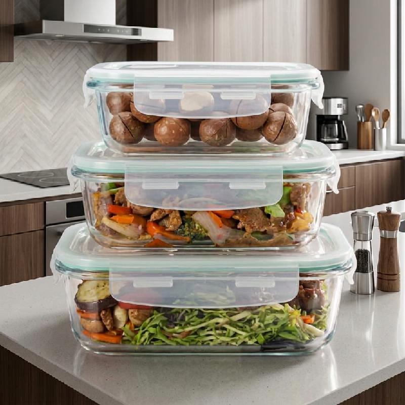 Fabricación en vidrio de primera calidad: Hechos de vidrio duradero de alta calidad, diseñados para el uso diario, perfectos para almacenar comidas, sobras, verduras, frutas y refrigerios, manteniendo la frescura de los alimentos.