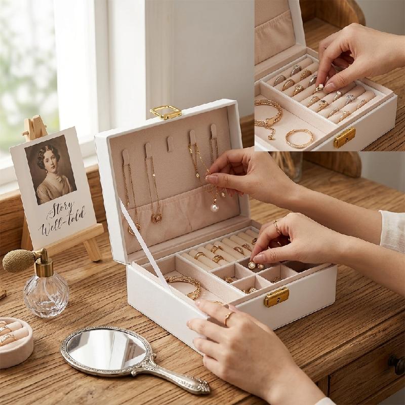 -26 compartimentos internos que permiten organizar anillos, aretes, collares y pulseras sin enredos