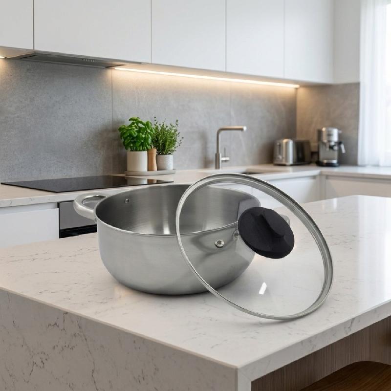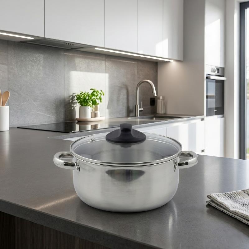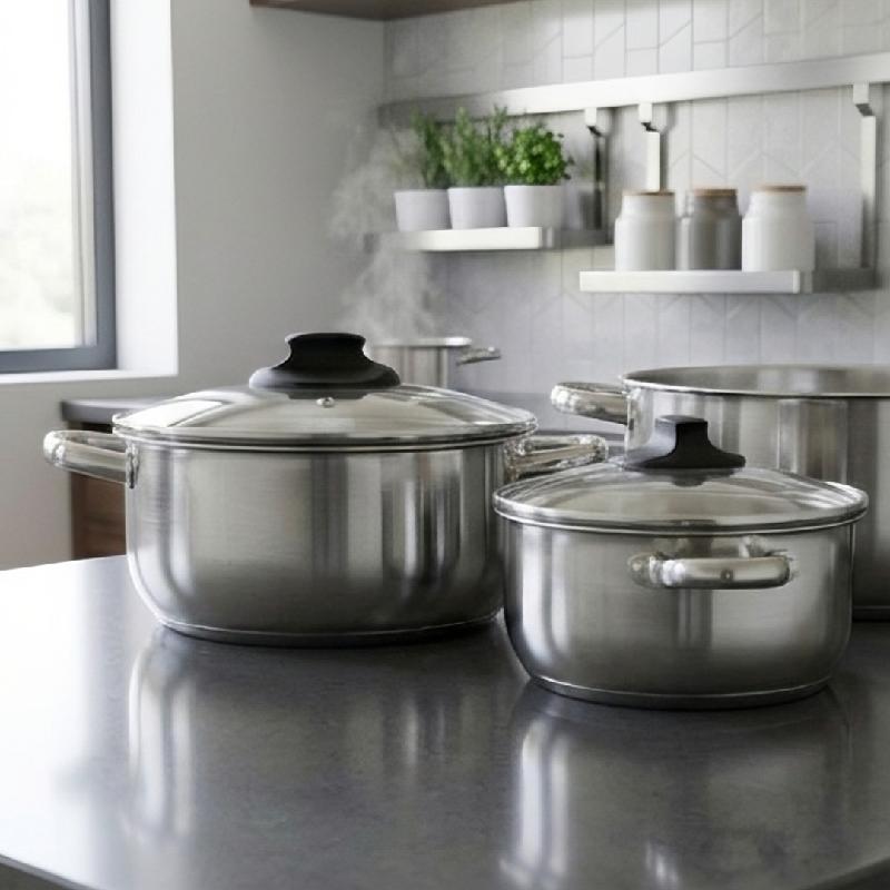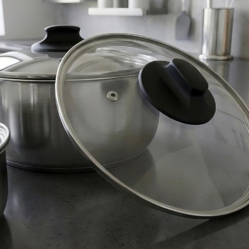 El Juego de 3 Ollas en Acero Inoxidable con Tapa de Vidrio (16, 20 y 24 cm) es una opción práctica y funcional para preparar una gran variedad de recetas en la cocina.